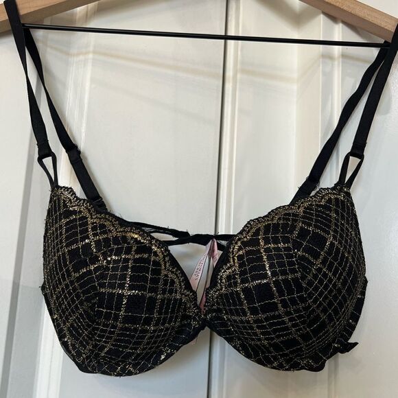 Victoria’s Secret black and gold bra women’s padded size 32C