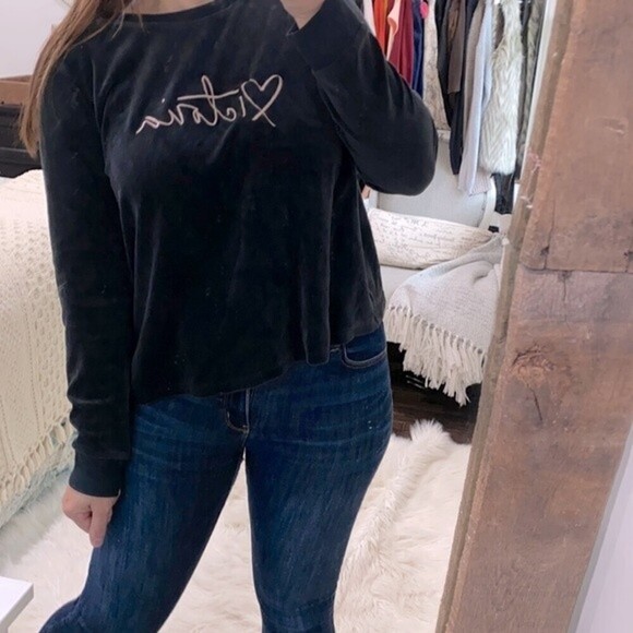 Victoria’s Secret black crushed velvet graphic sweatshirt size large open back