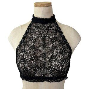 Victoria's Secret black lace bra S mesh high neck bralette underwire no padding