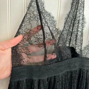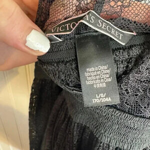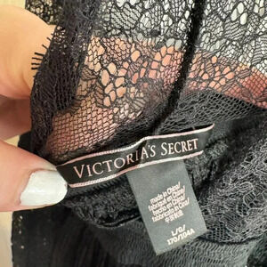 Victoria's Secret black lace goth witchy pleated neglige size large A35