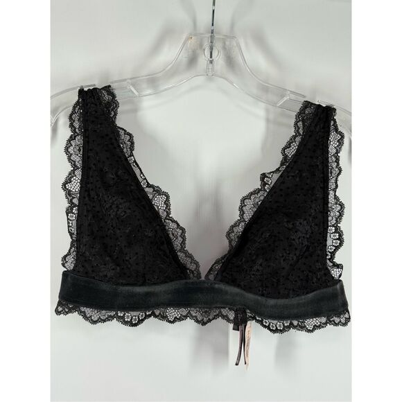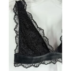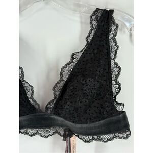 Victoria’s Secret black lace velvet trimmed unlined bralette size large NWT