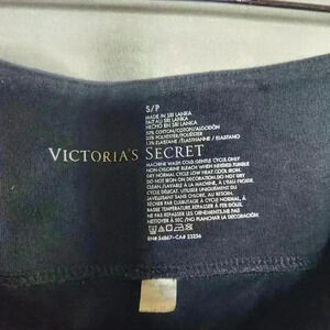 Victoria's Secret black leggings VS angels athletic leggings size small. There is a very small bleach stain on front of the leggings. It's light colored though. I didn't even notice until I had my ring light on it. Otherwise in good condition. Measurements are approximate and taken flat.