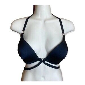 Victoria's Secret black push up caged harness stappy swim top bra 32DD