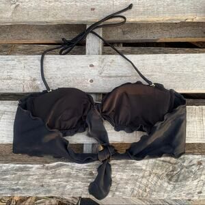 Victoria’s Secret black ruffle bandeau style bikini top with halter ties. Tie back. Size small. Does have lining pads still.
