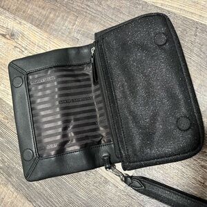 Victoria's Secret black sparkle rhinestone viral bow phone wristlet clutch EUC