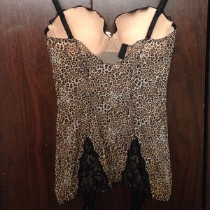Leopard print Vicky's body suit with flashes attached, great condition, 34C cup.
