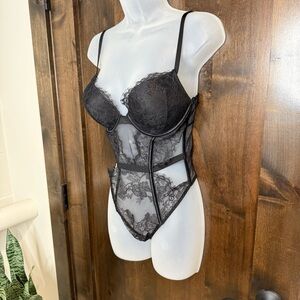 Victoria’s Secret bombshell lace teddy bodysuit push-up bra adds 2 cup size NWOT