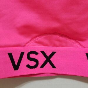 Bright neon VSX The Player racerback workout gym athletic sports bra. VSX logo band. Pullover style. Wire free. Stretch. Stretch. 2016. Workout, gym, active, activewear, athletic, athleisure, fitness, girly, sporty.