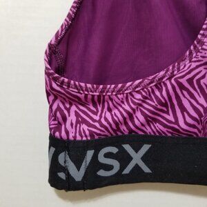 Zebra animal print pattern VSX The Player racerback workout gym athletic sports bra. VSX logo band. Pullover style. Wire free. Stretch. 2016. Workout, gym, active, activewear, athletic, athleisure, fitness, sporty.