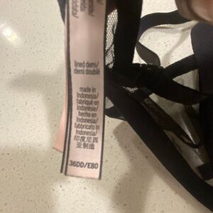 Victoria’s Secret bra lined Demi bra size 36DD in good preowned condition normal wear and tear. The back straps are mesh. The front of the bra has pink flowers all over the bra. Super cute has a underwire. See pictures for more details.