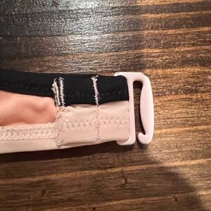 Elegant Victoria's Secret bikini top in pink with black accents. Ideal for comfort and style while splashing around at the pool or beach. Sturdy clasp, some damage to the hardware, as shown, but not noticeable and doesn’t affect the wearability of the top. Would go great with some black bikini bottoms. Good coverage. Smoke-free home, thanks for looking!