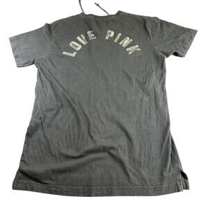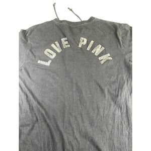 Love Pink- cotton Tee- XS- black- preowned- gunmetal sequin back- front ties