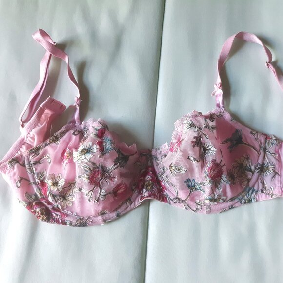Victoria's Secret dream angels Bra Sz 34DD Pink Floral Embroidered