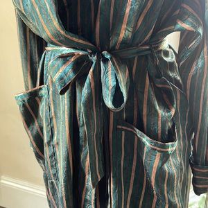 Victoria’s Secret beautiful full length robe in jade green and copper stripes. Cuffed sleeves. Belted. 2 front pockets.