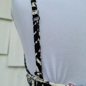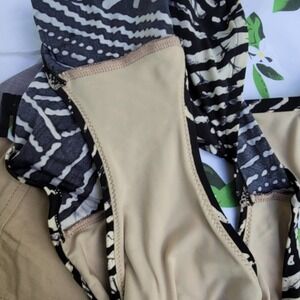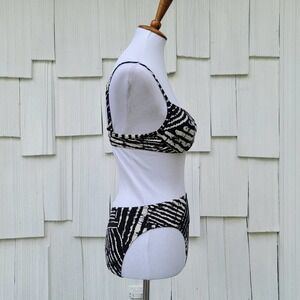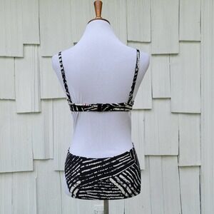 Great lightly used condition black with a cream striped print. Bottoms are a size small high waist fit. Top is a 34B with adjustable straps.