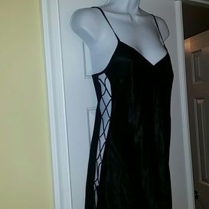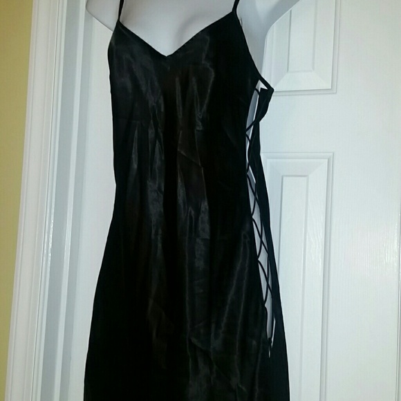 New unworn black thin satin adjustable strings to tie up on both sides..