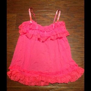 Victoria's Secret lingerie size L. Cute lace ruffle details. Bright pink. No padding. Adjustable straps. 100% nylon. In great shape!