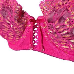 Victoria’s Secret mesh bra unlined demi 34D hot pink/gold Barbie fairy lace up