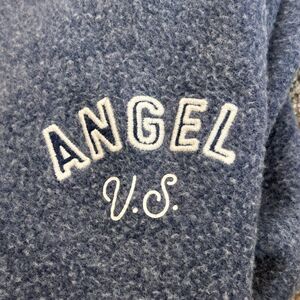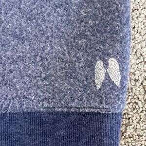 Super soft blue crew with VS Angels branding and Angel Wings logo. Darker blue rubbed details at waist, cuffs and neckline. No flaws, just an unbelievably soft comfortable top you’ll want to live in.