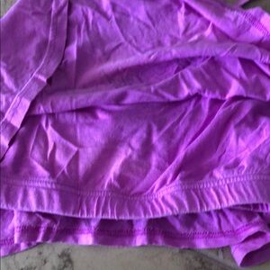 Stylish purple crop top featuring a script design. Perfect for casual wear. Minor fading