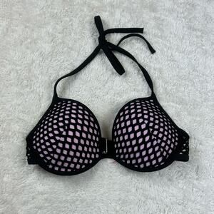 Victoria's Secret pink and black mesh halter bikini top, 34D