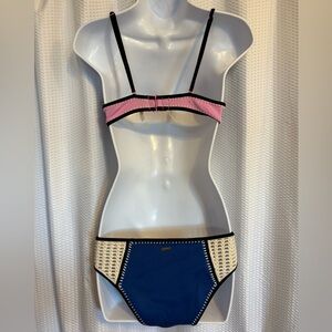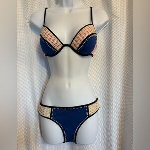 Victoria’s Secret pink & blue & crochet two piece swimsuit bikini size 34B M