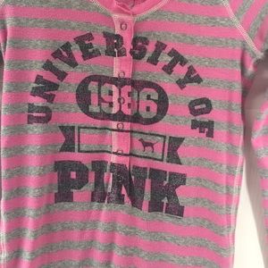 Victoria's Secret pink longsleeved T-shirt button up in front pink and gray