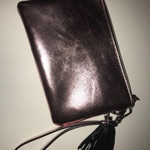 Pink metallic clutch. Used twice. No scratches or stains. Great for going out and easy to carry. Comes with wrist strap.