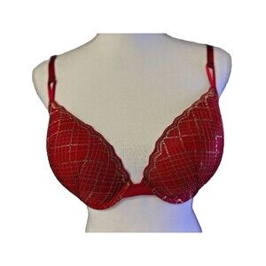 Victoria's Secret red plaid w/sparkly gold accent push up bra size 38C good pre-loved condition.