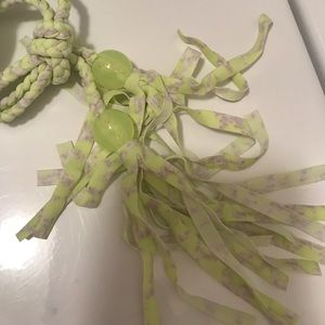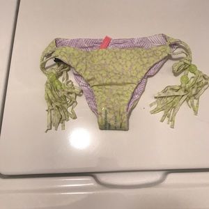 Victoria's Secret reversible cheeky side tie bikini bottom.. One side is white with purple leaf pattern and the other side is a neon yellow animal print! Hygienic liner attached .. only removed for picture purposes comes in the plastic bag since it was ordered online!