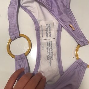 Victoria's Secret ring cheeky bikini bottom in a light purple color with yellow/gold rings! Hygienic liner attached these were ordered online and don't have tags but will come in the packaging… One was removed from the package for picture purposes only thank you!