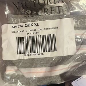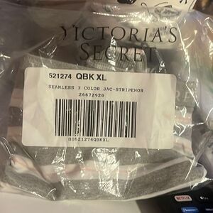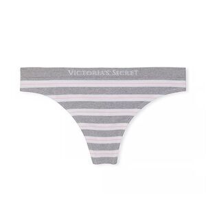 Victorias Secret seamless thong panty. Size XL. Brand new in package. Gray stripe, white stripe and a tiny pink stripe. Victoria's Secret logo on waist band.So soft. So comfortable. This sleek thong smoothes everything over in a seamless material with an nearly invisible look and feel.