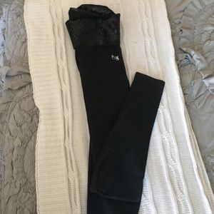 NWOT black leggings from PINK. The top fold over is embellished in black chevron sequins. Took the tags off and forgot about them. NO TRADES. Priced high for offers 😘