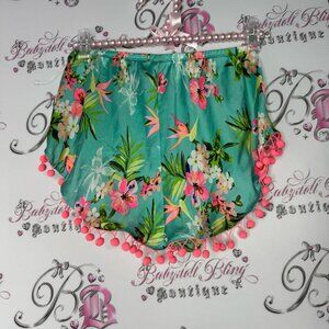 Victoria’s Secret shorts 🌺 floral printed neon with pom-poms fluff ball details