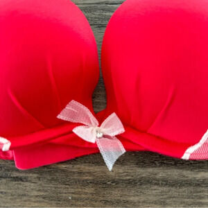 Victoria’s Secret size 34C Fabulous Plunge Push Up Bra Red Lace Underwire Sexy