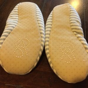 Victoria's Secret slippers! NWOT! Grey and white striped! They say size medium! I wear. 6.5 - 7 shoe and they are a bit tight I think!