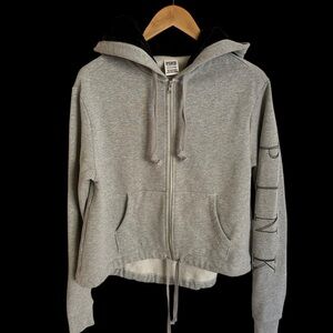 Victoria’s Secret small Gray Zip Up Sweatshirt Jacket Fur Lined Hoodie Grey