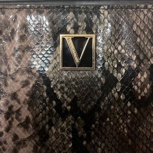 Victoria’s Secret snakeskin print tote style purse, multiple pockets, mirror