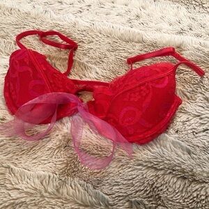 🆕 Victoria’s Secret solid red lace front closure bra pink tie padded