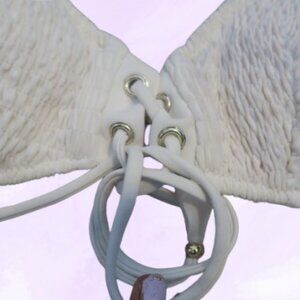 Victoria's Secret swimsuit bra top strappy tie front scrunched in off white size large.