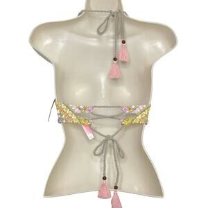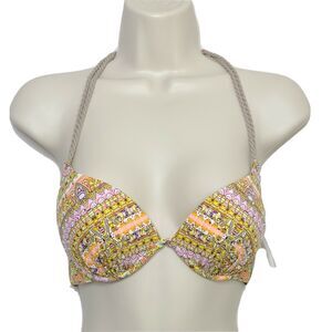Victorias Secret the Gorgeous Bikini Top 34B Pink Tan Push Up Tassel Pink