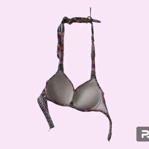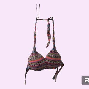 Victoria's Secret the hottie halter geometric aztec halter bikini top with jewel on straps in pink and various colors size 32B.