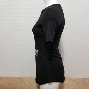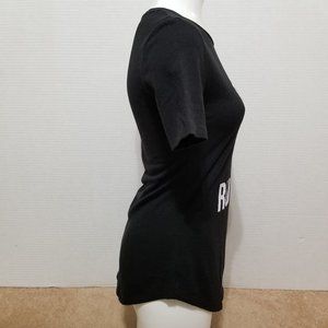 Slub knit Rock The Runway Victoria's Secret Paris 2016 Fashion Show graphic slogan curved hem shirt. 2016.
