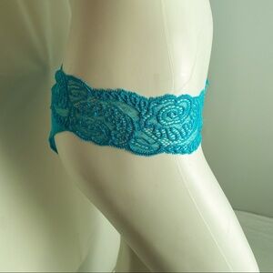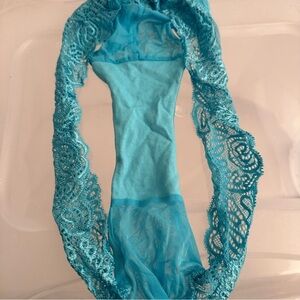 Victoria’s Secret turquoise nylon mesh lace panty. Sample from when my friend was a designer for vs and other brands. Samples don’t tend to have tags. Smoke free home