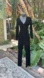 It’s pretty jumpsuit is a stretch velour or velvet. It has a wrap front with a side tie, straight legs in excellent condition.