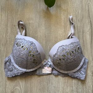 Victoria’s Secret vintage Angels Lace Trimmed Bra with Rhinestones in Gray