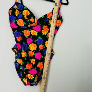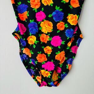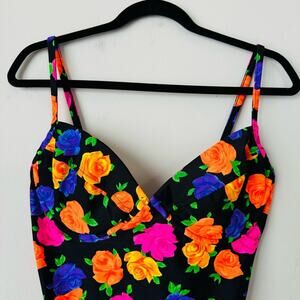 Victoria’s Secret vintage black neon floral Floral 1 Piece Swim Suit woman’s 14C