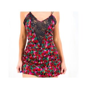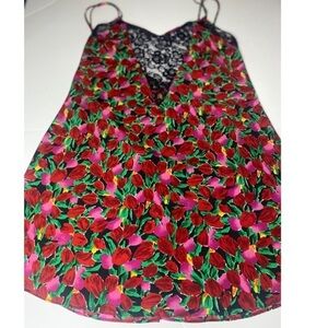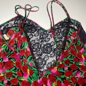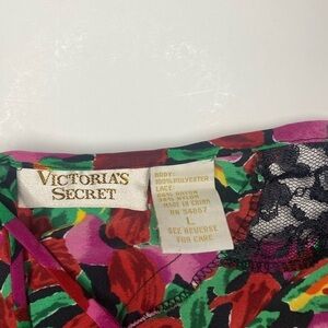 Victoria’s Secret vintage gold label floral slip with black trim lace L