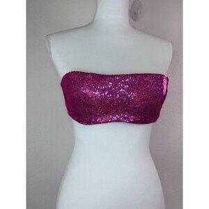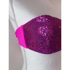 Victoria's Secret women's small hot pink sequin bandeau bikini top strapless