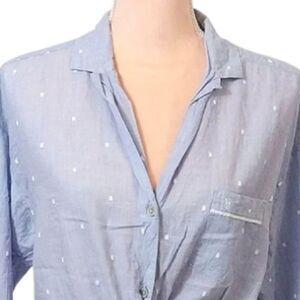 🎁 Victoria's Secret 2016 Blue Embroidered Button Up Night Shirt Medium